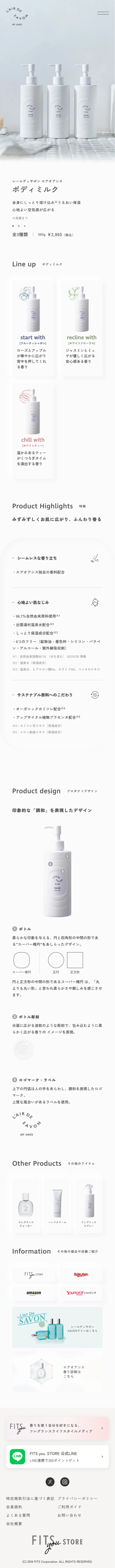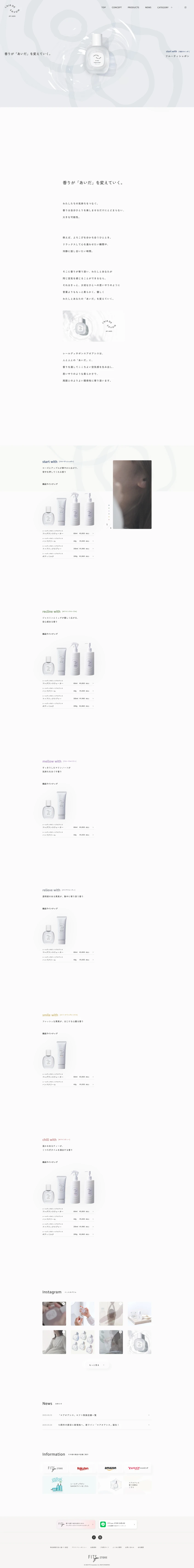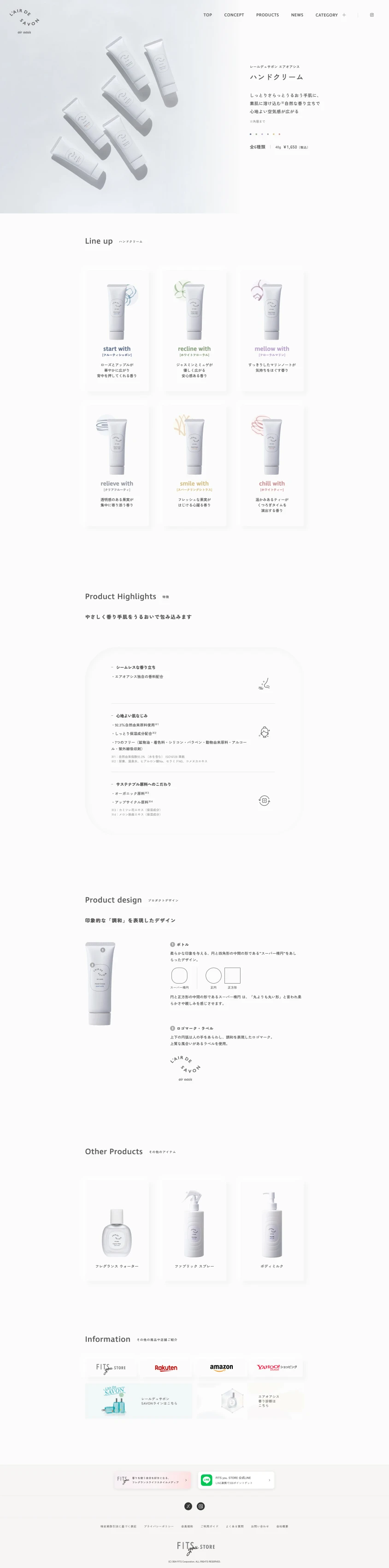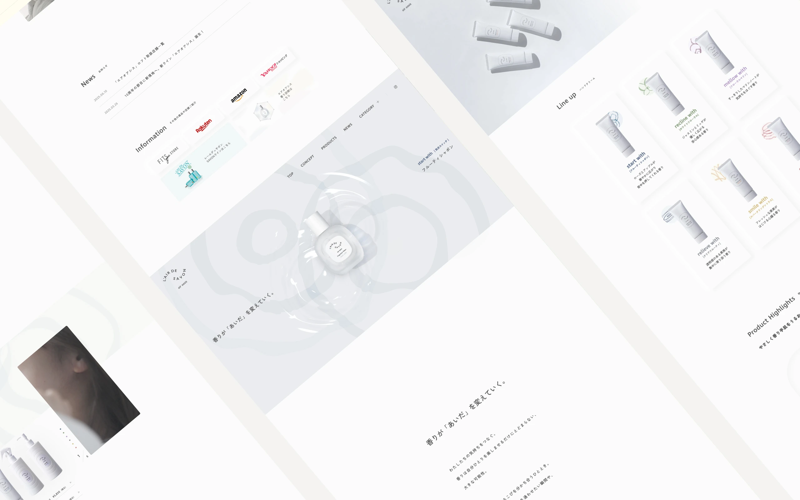 フレグランス・ボディケアを中心としたブランドを展開する、フィッツコーポレーションさまの新規ブランドサイトにおいて、デザイン〜実装まで一貫して担当させていただきました。ブランドのコンセプトである「ここちよい空気感」「思いやりのような柔らかさ」をビジュアルからアニメーションに落とし込み、何度も訪れたくなる穏やかなサイトを目指しました。