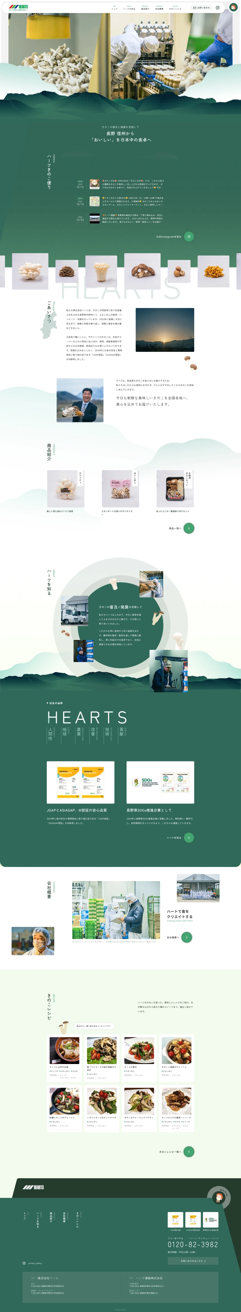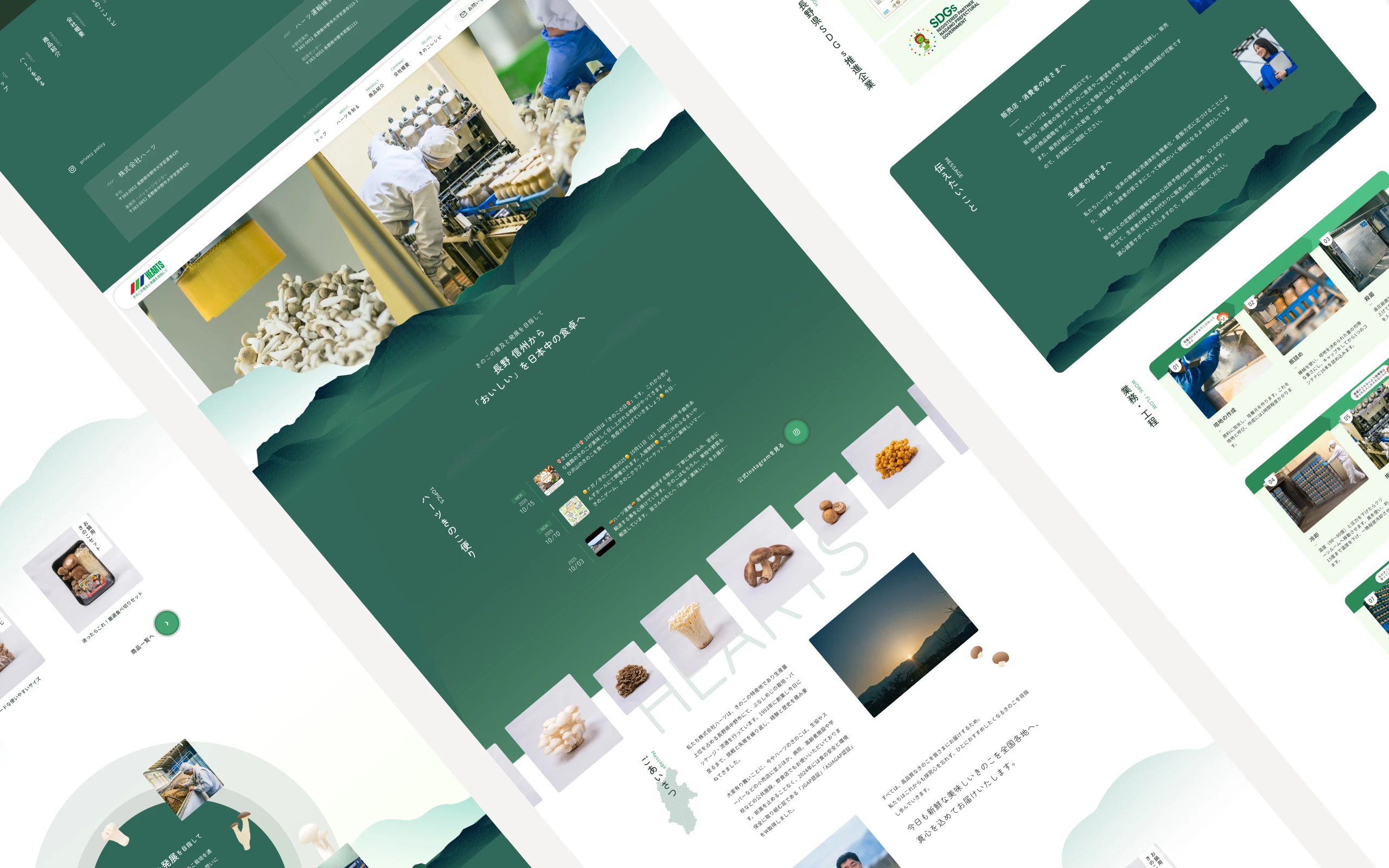 長野県信州にてきのこの栽培・販売をする、ハーツさまのコーポレートサイトリニューアルをさせていただきました。長野県での取材・撮影、コピーライティング〜studio実装に至るまで、一貫して行いました。社員の皆さまのあたたかさや、きのこに対する真摯さに触れ、それをそのままサイトに落とし込むことができ、私たちとしても大きく成長できたプロジェクトだと感じています。